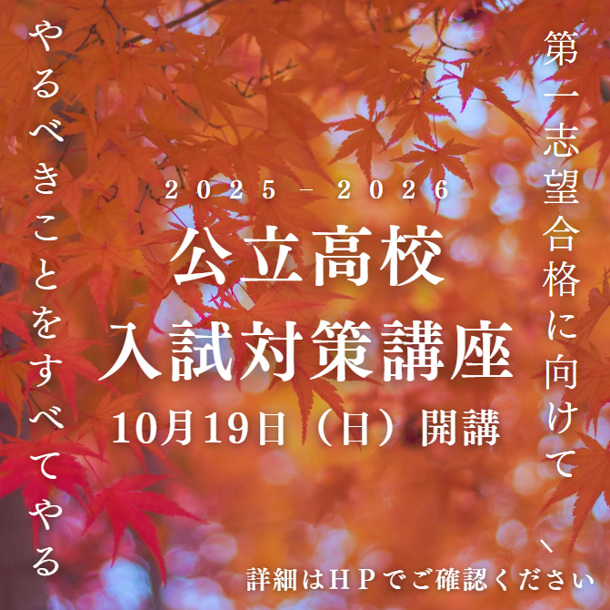 入試までの限られた時間で、どれだけ実力をつけるか、目標とする点数まで引き上げられるかが合否の鍵となります。的を絞った勉強こそ、今求められる学習方法です。公立高校を第一志望とされている中学3年生は是非、ご受講をご検討ください。